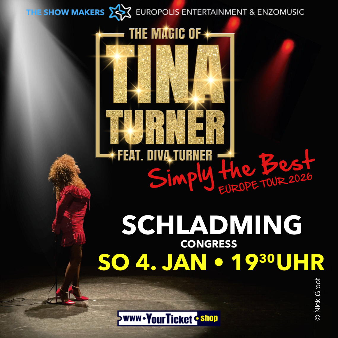Tauchen Sie ein in die Welt von Tina Turner mit dieser einzigartigen Concert Tribute Show THE MAGIC OF TINA TURNER >>> featuring DIVA TURNER aus den Niederlanden (Finalist der großen TV Show „THE TRIBUTE“)! Unvergleichliche Power, Leidenschaft und Stärke, neben einer außergewöhnlichen Stimme, waren die Markenzeichen der mehrfachen Grammy Awards Gewinnerin TINA TURNER und sind es auch von DIVA TURNER! Lassen Sie sich mitreißen von Tina’s größten Hits wie "What's Love Got to Do With It", "Simply the Best" „ Nutbush City Limits“, "Private Dancer" u.v.m.! . DIVA TURNER haucht der Ikone und Queen des Rock 'n' Roll neues Leben ein und entführt Sie in eine Zeit voller Glanz, Glamour und unvergesslicher Musik. Feiern Sie mit uns das Erbe und die unübertroffene Bühnenpräsenz von Tina Turner in einer Show, die Sie mitreißen und begeistern wird. Treten Sie ein in die Welt der Rocklegende und lassen Sie sich von ihrer Musik verzaubern! Ein Abend voller Hits, Emotionen und einer außergewöhnliche Performance erwarten Sie.
