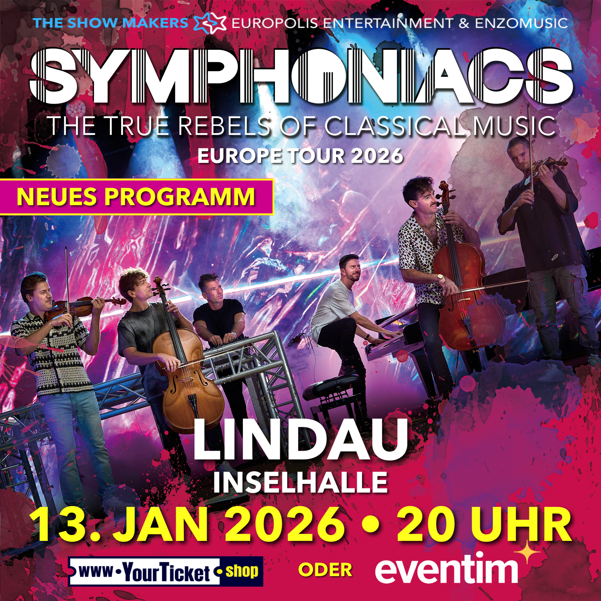Für Fans von klassischer Musik, die bereit sind, neue Horizonte zu entdecken, sind die SYMPHONIACS ein absolutes Muss. Ihre Musik berührt die Seele, inspiriert die Sinne und hinterlässt einen unvergesslichen Eindruck bei jedem, der ihre magischen Klänge erlebt. Tauchen Sie ein in die Welt der SYMPHONIACS und lassen Sie sich von ihrer musikalischen Exzellenz verzaubern. Von Tokio bis Wien, von Los Angeles bis Berlin und schon bald, im Rahmen ihrer Welttournee, auch in Ihrer Stadt.