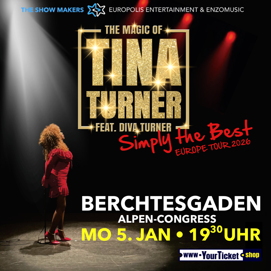 Tauchen Sie ein in die Welt von Tina Turner mit dieser einzigartigen Concert Tribute Show THE MAGIC OF TINA TURNER >>> featuring DIVA TURNER aus den Niederlanden (Finalist der großen TV Show „THE TRIBUTE“)! Unvergleichliche Power, Leidenschaft und Stärke, neben einer außergewöhnlichen Stimme, waren die Markenzeichen der mehrfachen Grammy Awards Gewinnerin TINA TURNER und sind es auch von DIVA TURNER! Lassen Sie sich mitreißen von Tina’s größten Hits wie "What's Love Got to Do With It", "Simply the Best" „ Nutbush City Limits“, "Private Dancer" u.v.m.! . DIVA TURNER haucht der Ikone und Queen des Rock 'n' Roll neues Leben ein und entführt Sie in eine Zeit voller Glanz, Glamour und unvergesslicher Musik. Feiern Sie mit uns das Erbe und die unübertroffene Bühnenpräsenz von Tina Turner in einer Show, die Sie mitreißen und begeistern wird. Treten Sie ein in die Welt der Rocklegende und lassen Sie sich von ihrer Musik verzaubern! Ein Abend voller Hits, Emotionen und einer außergewöhnliche Performance erwarten Sie.
