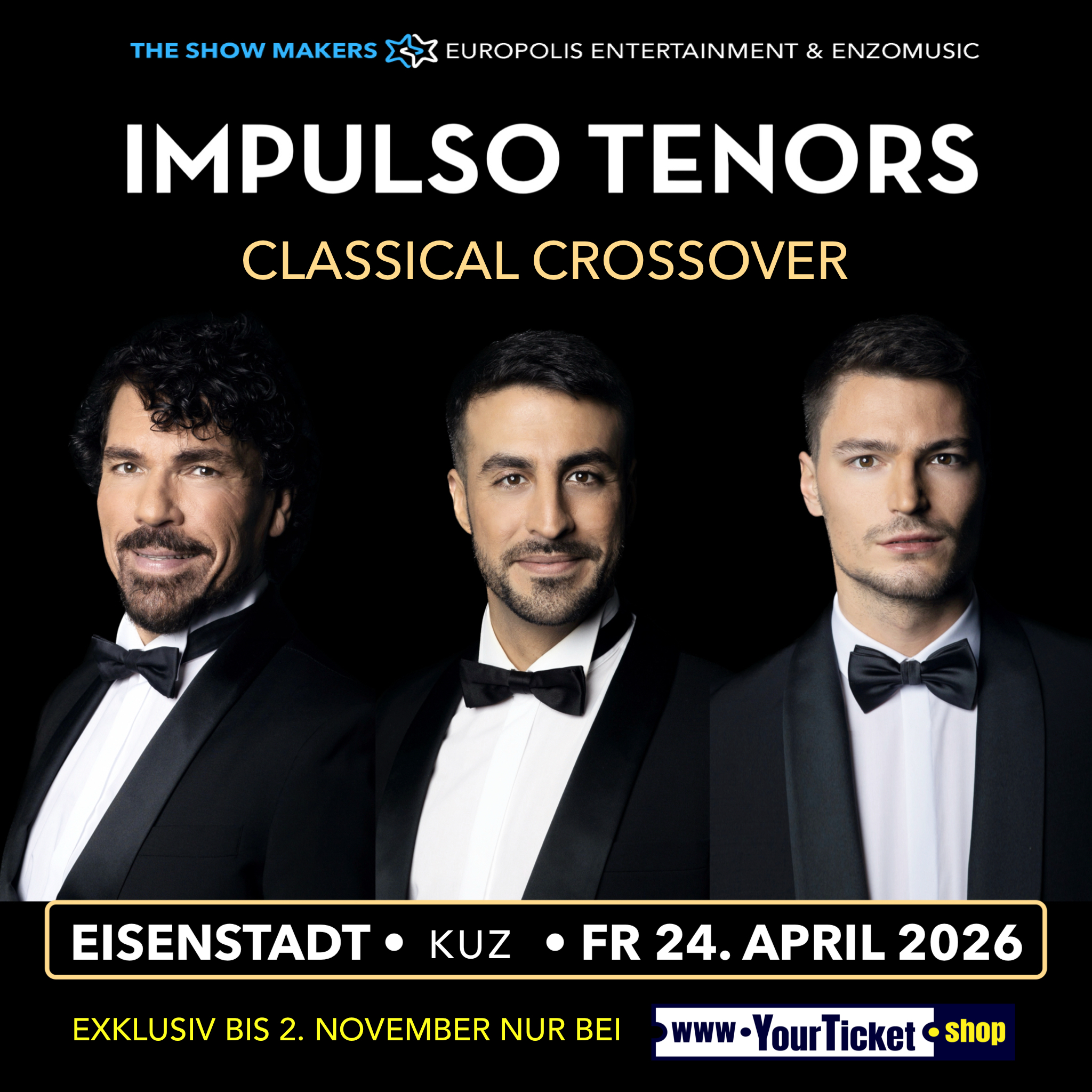 Wenn sich große Stimmen, emotionale Tiefe und stilvolle Eleganz verbinden, entsteht ein musikalisches Erlebnis, das unvergessen bleibt – genau das verkörpern die IMPULSO TENORS. Seit ihrem umjubelten Durchbruch bei The Voice of Germany haben Laszlo Maleczky, German Gholami und Val Mihelčič sich als eine der spannendsten neuen Formationen im Classical-Crossover-Genre etabliert. Mit ihrer einzigartigen Mischung aus Oper, Pop und internationalem Flair verzaubern sie die Bühnen Europas.