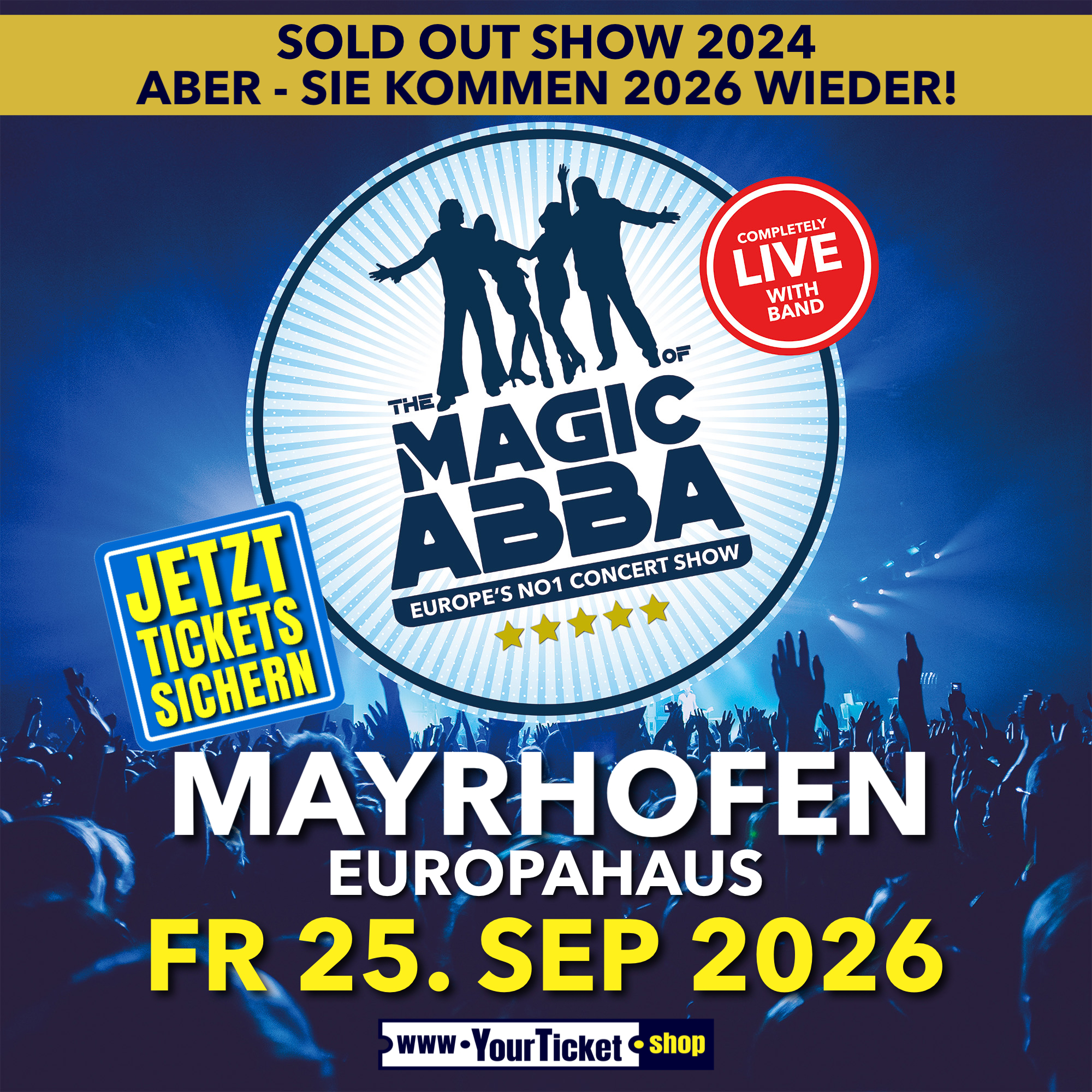 Freitag, 19:30 Uhr THE MAGIC OF ABBA EUROPE’S NO1 CONCERT SHOW • TOUR 2026 Location EUROPAHAUS
