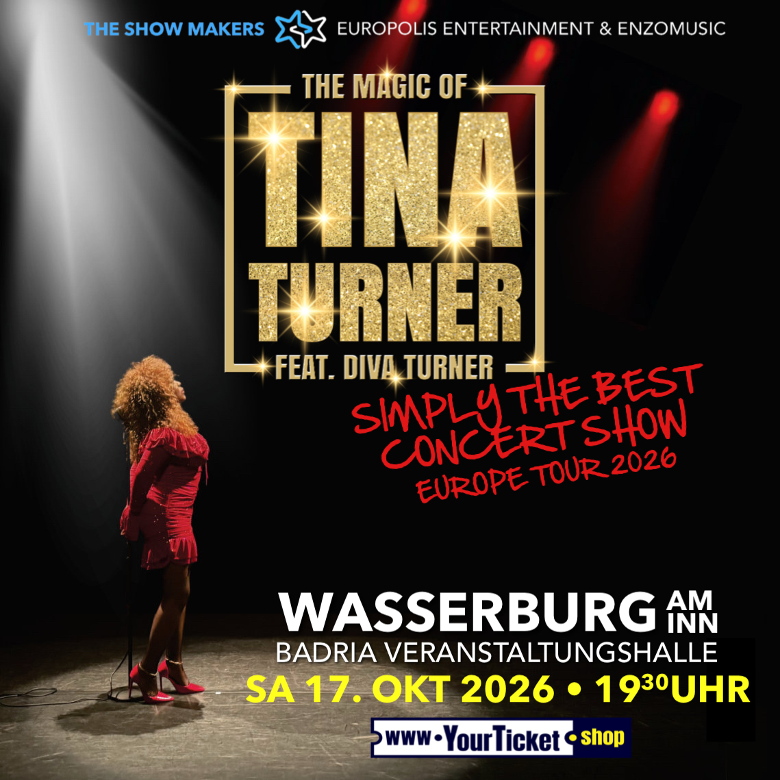 Samstag, 19:30 Uhr THE MAGIC OF TINA TURNER feat. DIVA TURNER and Band! „Simply The Best“ - Europe Tour 2026 Location BADRIA HALLE