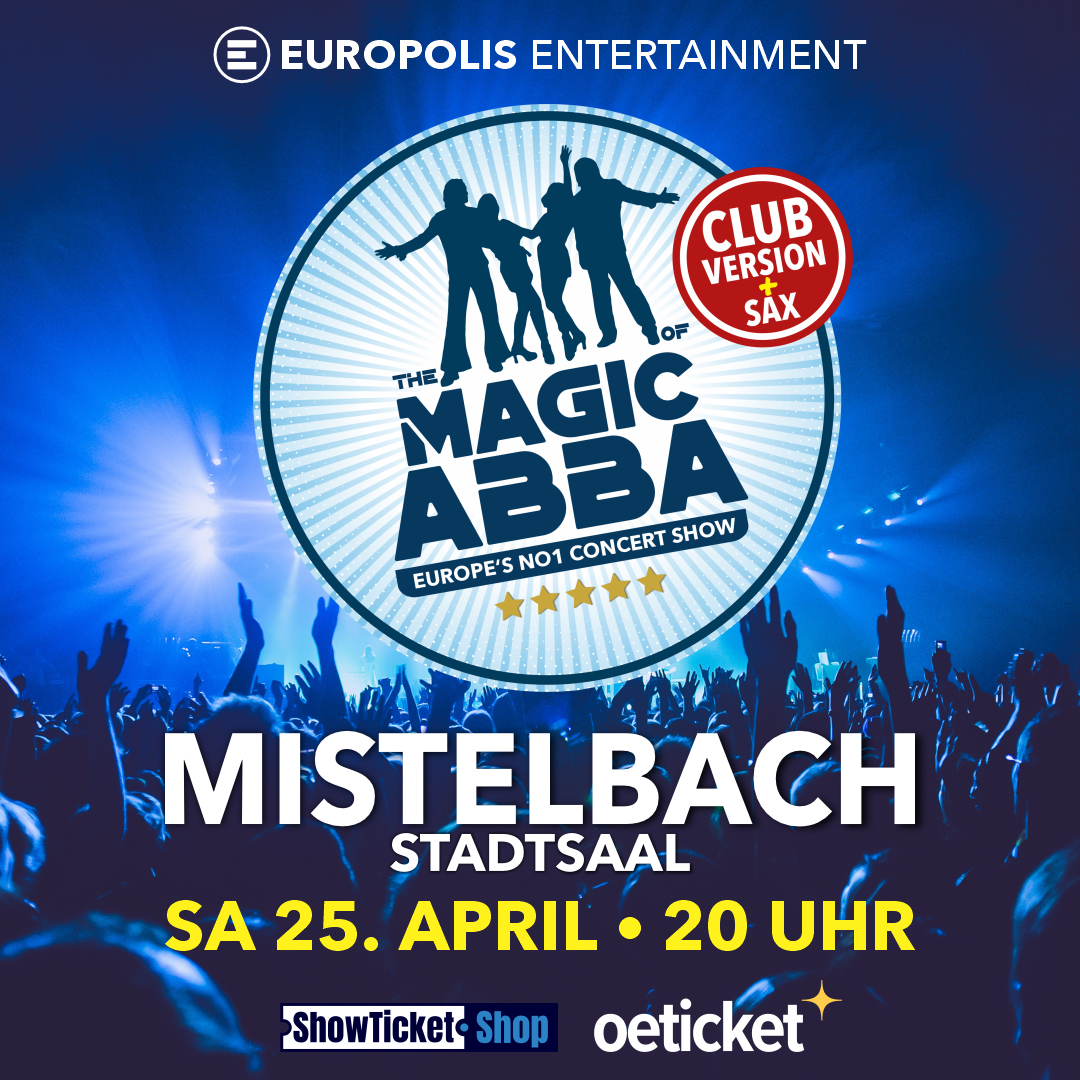 THE MAGIC OF ABBA fängt den unverwechselbaren Sound und den Spirit einer Band ein, deren Musik bis heute Generationen miteinander verbindet. Seit über 25 Jahren begeistert diese Concert-Show ihr Publikum in ganz Europa und zählt (mit besonderen Auftritten auch außerhalb des Kontinents) zu den erfolgreichsten ABBA-Tribute-Shows.